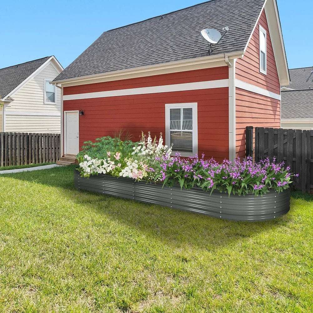 š Longer Lifespan: Made of 22-gauge 0.8mm thickness corrugated galvanized steel with multi-layer powder coatings. The extral-large oval round heavy-duty planter box equipped with interior four stabilizing rods is strong enough to hold soil for decades.