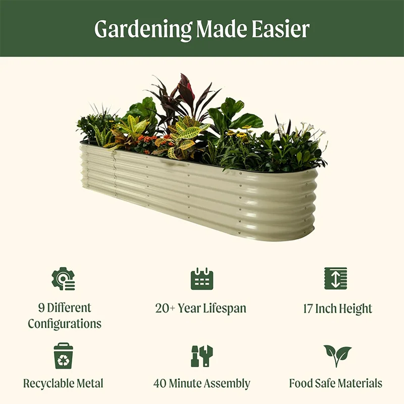 17" Tall Galvanized Steel Eco-Friendly Durable Outdoor Raised Garden Bed Easy Installation Powder-Coated Growing Flowers Herbs